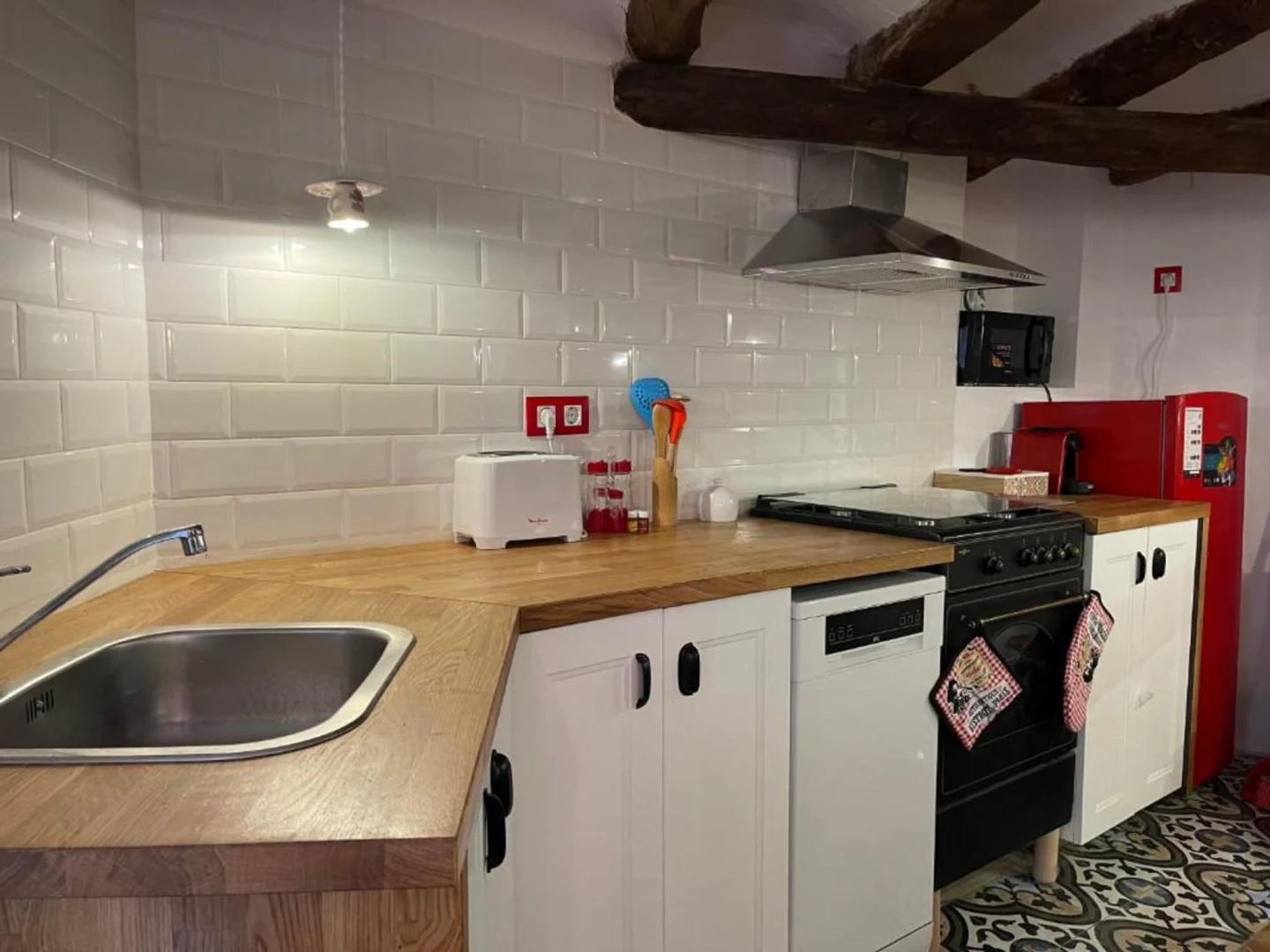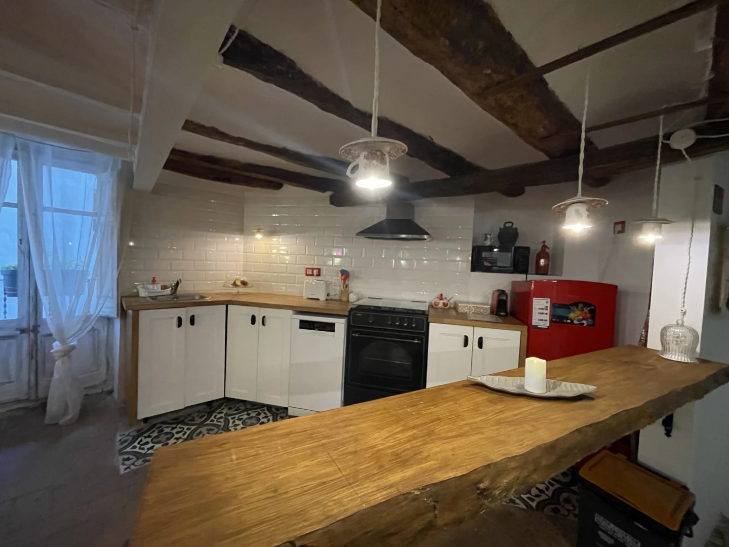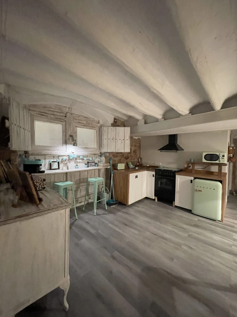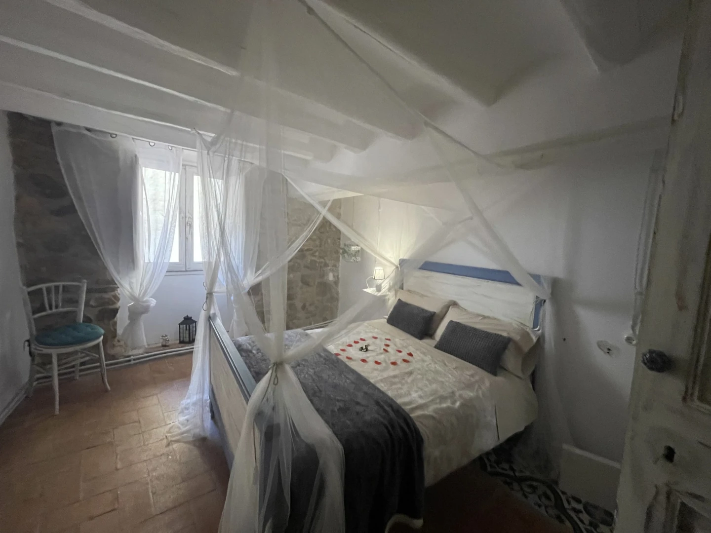 En el segundo piso de un edificio histórico con más de 200 años, este alojamiento con encanto combina ladrillo artesanal, vigas de madera y piedra vista, creando un ambiente único y acogedor.